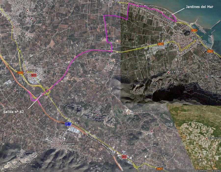 desde la dirección Alicante - salir hacia Dénia, Ondara, Jávea. - veáse imagen número 1